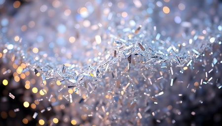Close-up view reveals a stunning array of sparkling particles, reflecting light in various directions, creating a mesmerizing, shimmering effect.