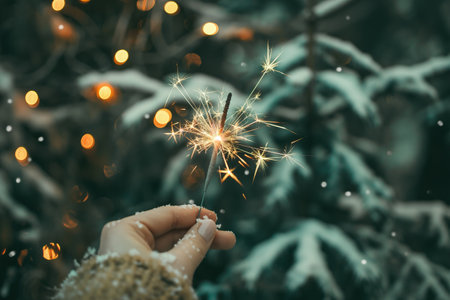 A mesmerizing sparkler lights up the night sky, surrounded by a beautiful bokeh effect, creating a festive and joyful atmosphere for celebrations.