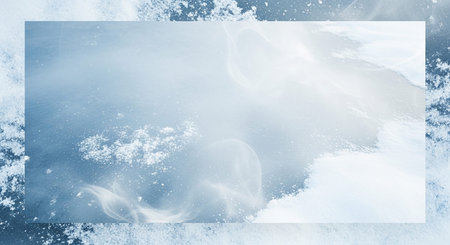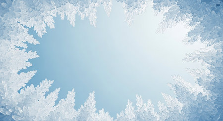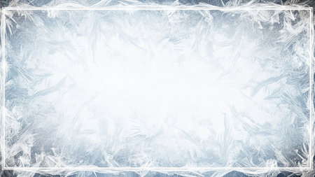 Frost crystal border on ice - Christmas background