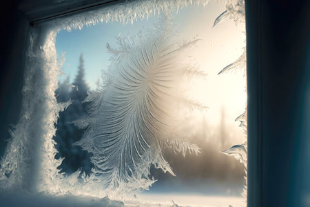 Enchanting image of intricately snowflakes adorning a frosty windowpane, capturing the serene beauty of a winter day.