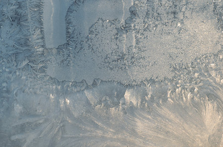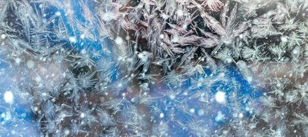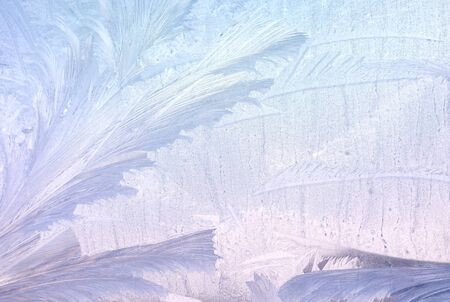 Frosty natural pattern on winter window glass. Abstract winter background.