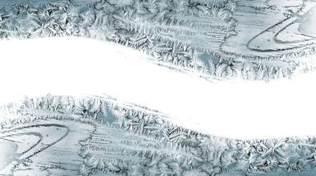 Frosty natural pattern on window glass. Winter background with copy space