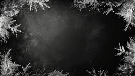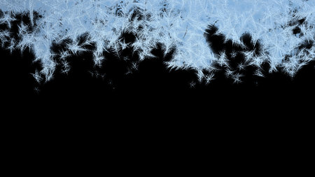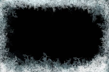 Decorative ice crystals on a window in form of a frame on black matte background