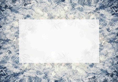 Christmas card with ice crystals on a blurred background. Place for your text.