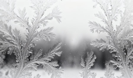 Frost patterns on frozen window as a symbol of Christmas wonder.