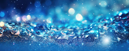 Sapphire glitter bokeh background. Unfocused shimmer royal blue sparkle. Crystal droplets wallpaper Ai generated