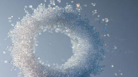 Silver-white glitter texture features tiny crystal-like sparkles and a frosted air-diffusion effect, evoking a serene winter wonderland ambiance with copy space
