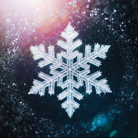 Intricate snowflake crystal close-up