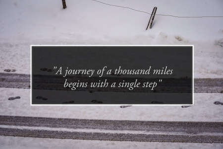 Inspirational quotes: A journey of a thousand miles begins with a single step typography with nature background