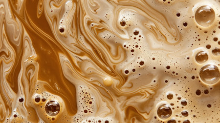 A Frothy Beverage with a Rich Creamy Foam Texture Creating a Swirling Macro Abstraction of Viscosity