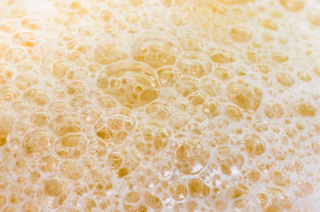 Close-up of beer foam with bubbles. Abstract background for design.