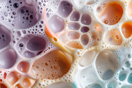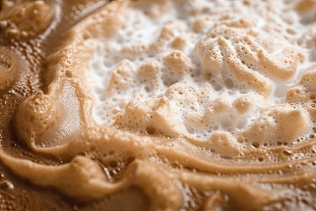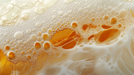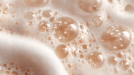 A captivating close-up image showcasing a creamy foam with bubbles on its surface, ideal for various artistic and design projects that require a touch of texture.