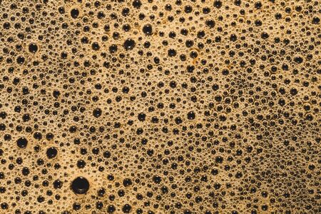 Coffee foam with bubbles macro texture. froth drink background