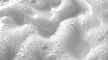 Intricate details showcase a rich foam texture that evokes luxury skincare cleansing. Soft bubbles create a serene ambiance, enhancing the tactile allure of clean surfaces.
