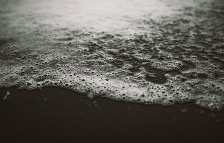 Captivating close-up of white bubbles and foam against a dark background. This image highlights textures and contrasts, perfect for showcasing freshness.