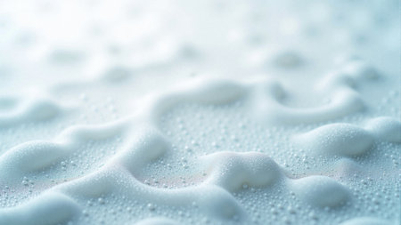 Layer of soapy foam bubbles on water, creating a clean and fresh feel with light emphasizing the soft texture