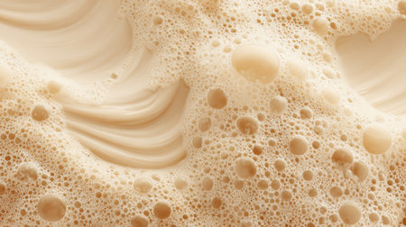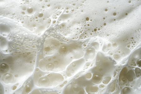 This image captures creamy white foam with bubbles in natural light, creating an abstract and smooth texture. Ideal for culinary and artistic projects.