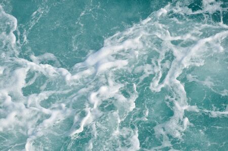 Rough deep turquoise and blue sea with white foam bubbles texture background
