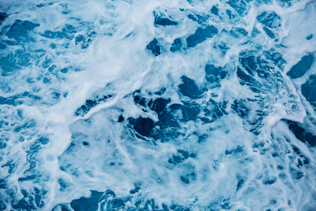 Abstract blue sea water with white foam for background, nature background concept