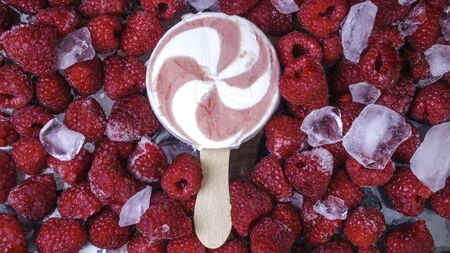Raspberry delicious ice cream, overhead shot, Ice cream wallpaper, background. Close-up View