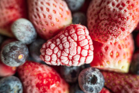 frozen mix strawberries blueberries raspberries and cranberries closeup