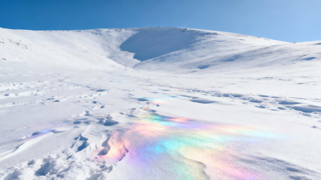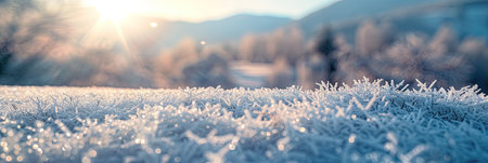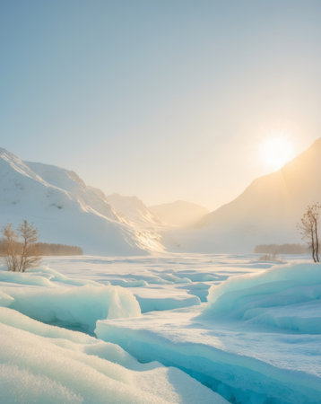 Sunlight glimmers on ice crystals in a peaceful winter scene, showcasing nature's beauty.