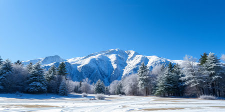 Endless fields of snow stretch far into the distance, kissed by the morning light. The mountains rise majestically against a clear sky, creating a breathtaking winter tapestry.