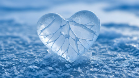 frozen ice heart icy heart Cold heart on brown woods blur background