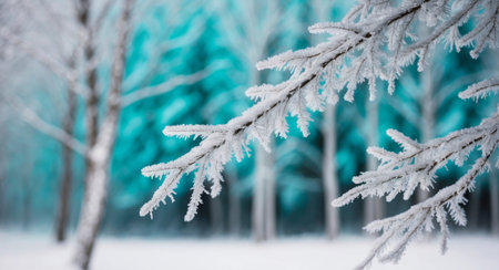 AI Generated. Frosty Branches Framing a Teal Winter Background