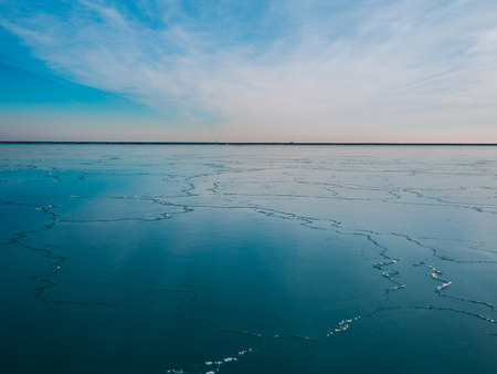 Baltic sea in winter. Fresh ice hummocks and cracks in ice edge