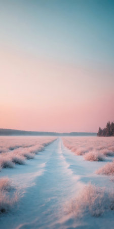 A phone screensaver featuring a snowy light landscape in pink and blue colors. The soft blend of pink and blue hues creates a serene winter scene, perfect for a peaceful and calming background.