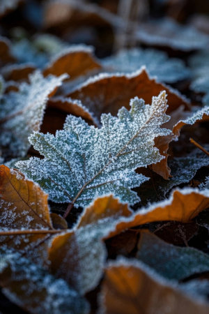 Autumnal Frost Patterns A Captivating Display of Nature s Textures, Hues, and Leaf Veins