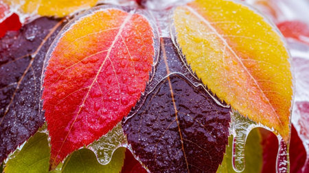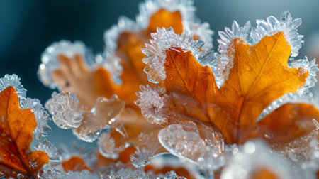 Detailed Frosted Autumn Leaves with Ice