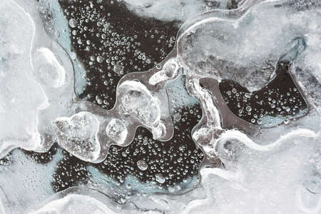Nature background. Closeup image of ice patterns on the surface of frozen water