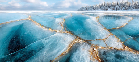 Stunning Cracked Blue Ice Surface on Baikal Lake A Captivating Frozen Winter Landscape Scene