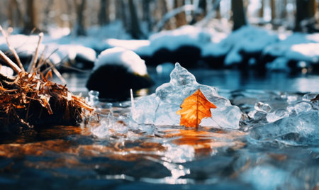 AI Generated. scene is enhanced by tranquil and motionless effect created when coldness of winter turns bodies of water into fragile layers of ice
