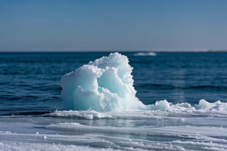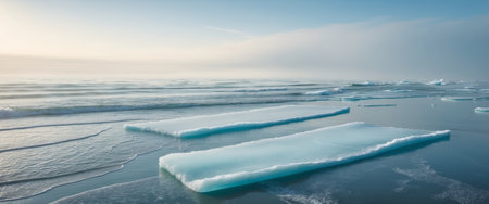Arctic Tranquility. Icy Landscape with Frozen Water and Ice Formations, Minimalist Nature Background