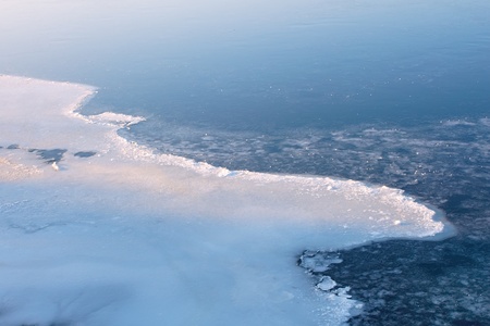 View of the frozen water from above with textures and patters