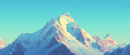 mountain peak, with snow-capped slopes and a clear blue sky, emphasizing the grandeur and majesty of the natural world.