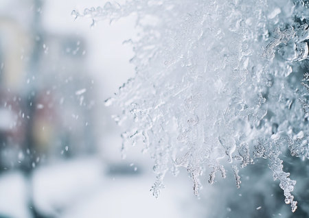 Unique icy rain droplets form intricate textures on surfaces in nature