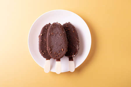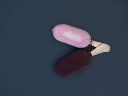 Chocolate and vanilla pop ice creams, Classic dark brown cocoa and milk cream ice cream Lolli pops.