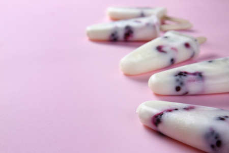 popsicle with blueberries on a blue background. High quality photo