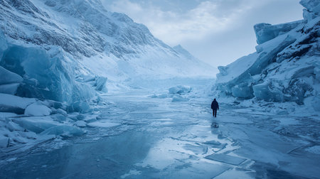 Unforgiving chilly surface of ice sheet. Creative resource, AI Generated