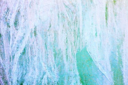Ice blue with textured white frost on a flat surface. background.