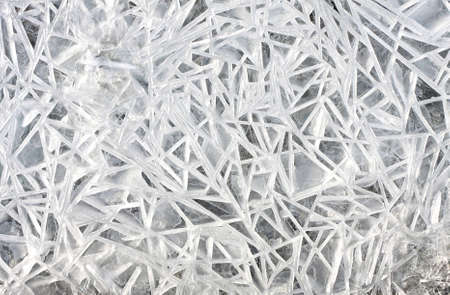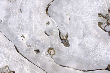Ice patterns on the frozen lake as an abstract background. Macro.