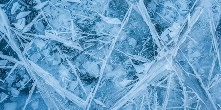 Crystal clear abstract background showcases sharp ice formations with cool blue tones, creating a serene atmosphere ideal for design and artistic projects