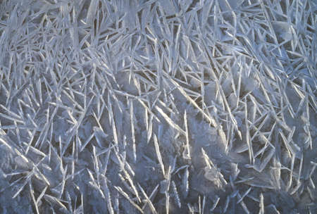Closeup or macro of ice crystals of frozen water in winter season