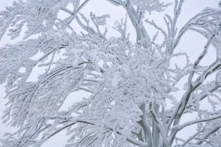 Frosted top of the tree in winter time