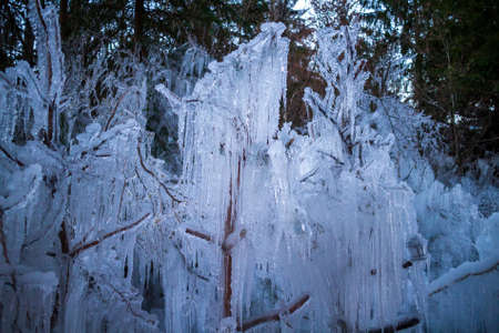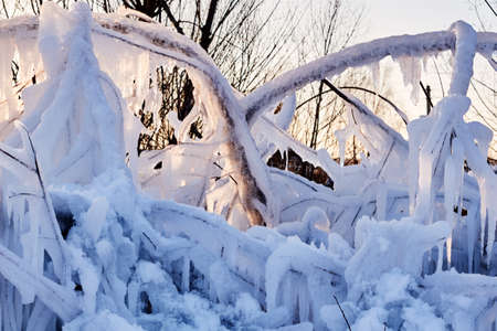 icicles frozen ice on tree branches in Winter season