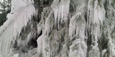 Winter landscape frozen waterfalls